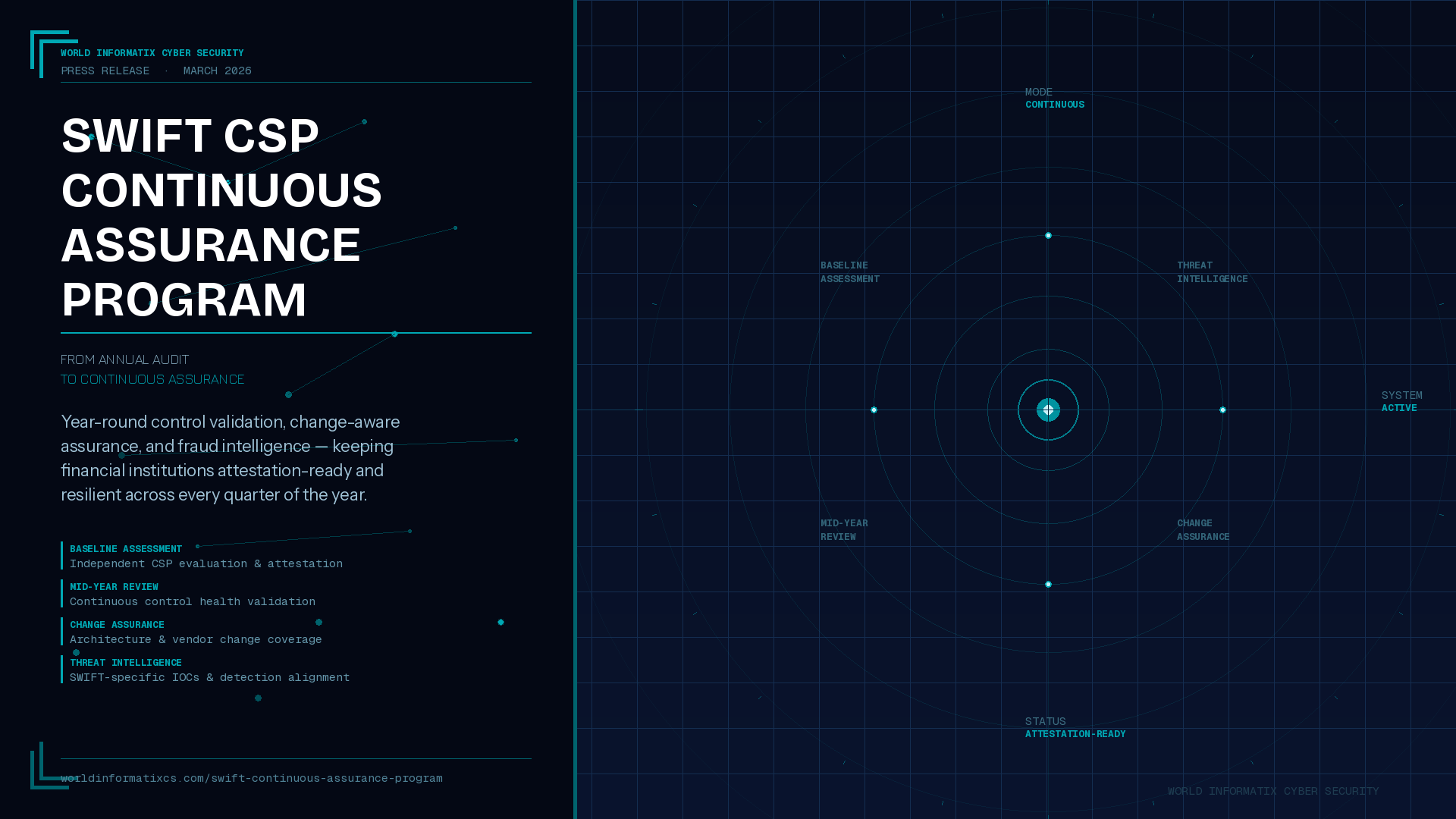 The SWIFT CSP Continuous Assurance Program is available immediately to financial institutions globally. Organizations interested in transitioning from annual compliance cycles to continuous, expert-led assurance are invited to schedule a consultation at worldinformatixcs.com/swift-continuous-assurance-program.